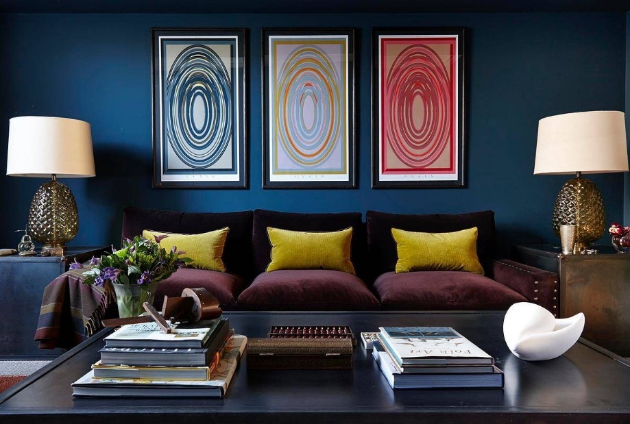 Различные функциональные вещи также будут уместны в интерьере. Это могут быть цветные вазы, подсвечники или же рамки для картин, фотографий. Оригинально смотрятся часы необычной формы и другие акценты в синем цвете. Помните, что именно такие детали делают оформление завершенным и помогают создать правильное впечатление