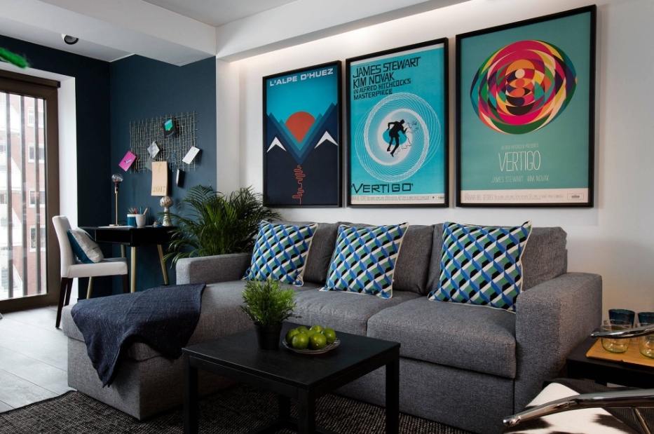 Данное сочетание подходит как для современной классики, так и для современного минимализма. В первом случае серый — тёплый, «древесный». Во втором это цвет бетона и стали. Голубой с серым можно задействовать даже для индустриального дизайна.
