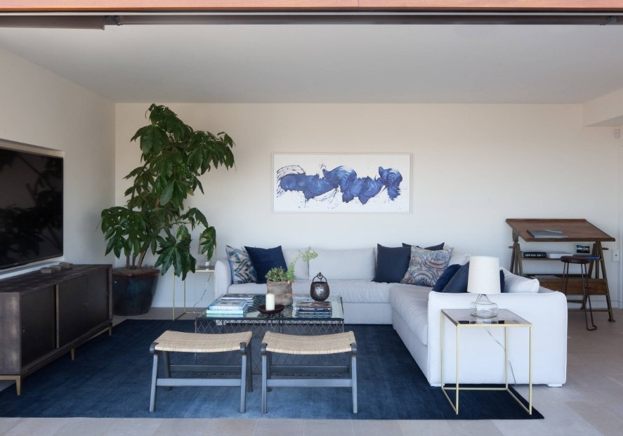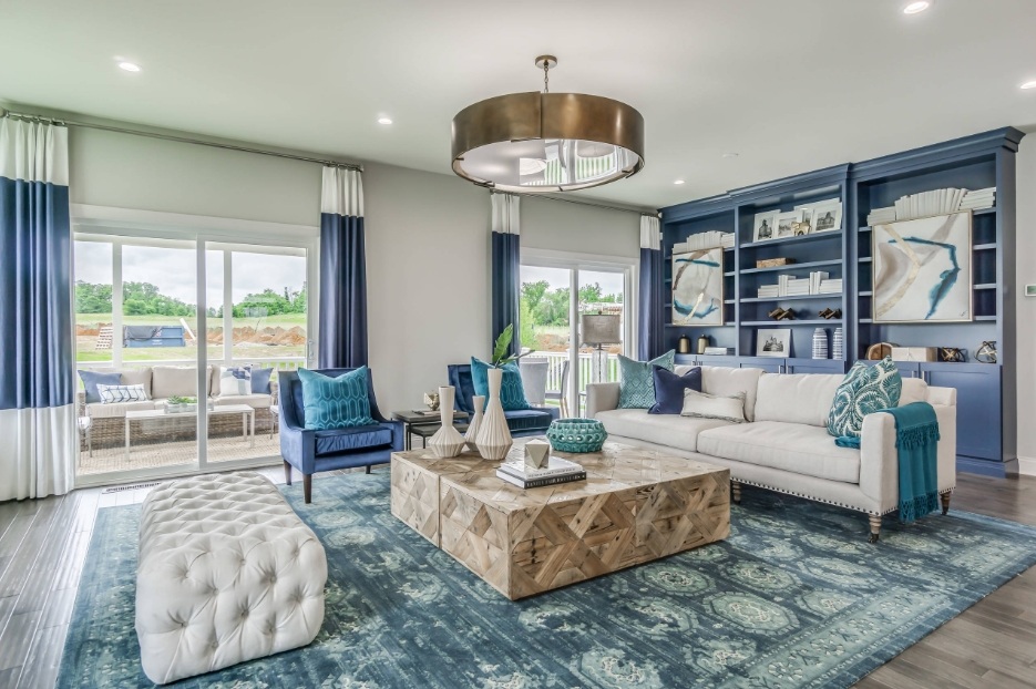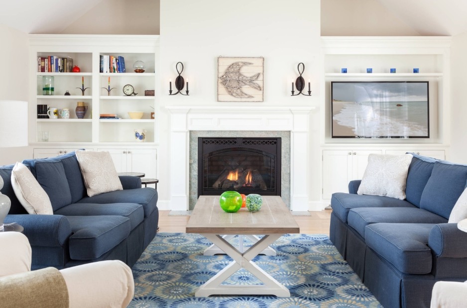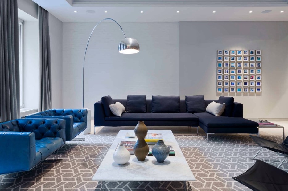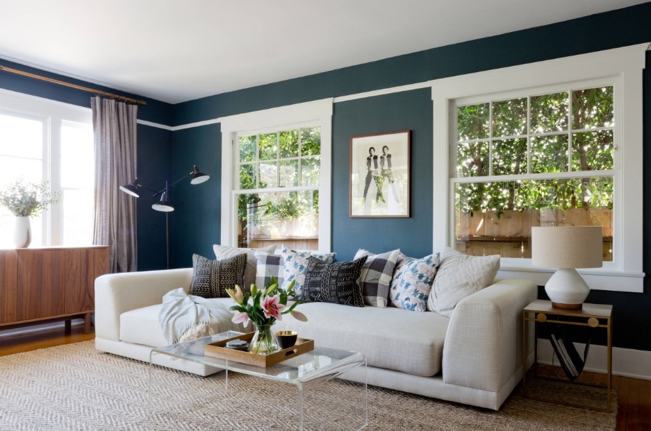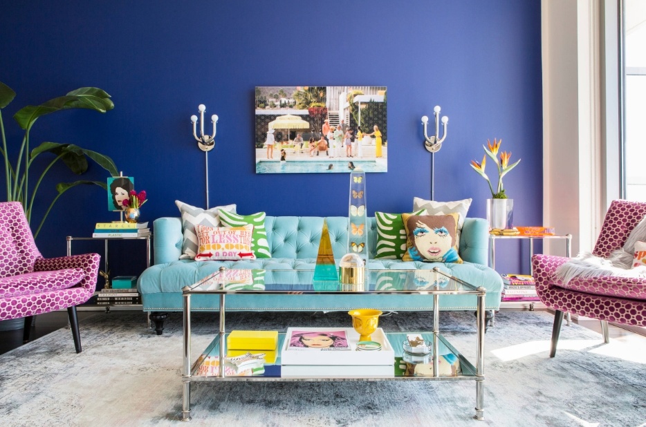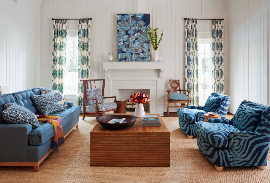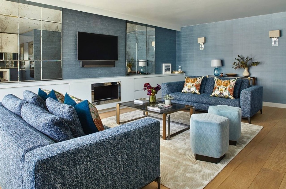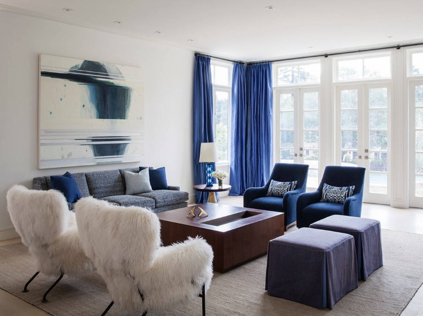 Если вы выбрали голубую гамму в качестве основы для гостиной, для начала продумайте, как его использовать и как зонировать пространство.