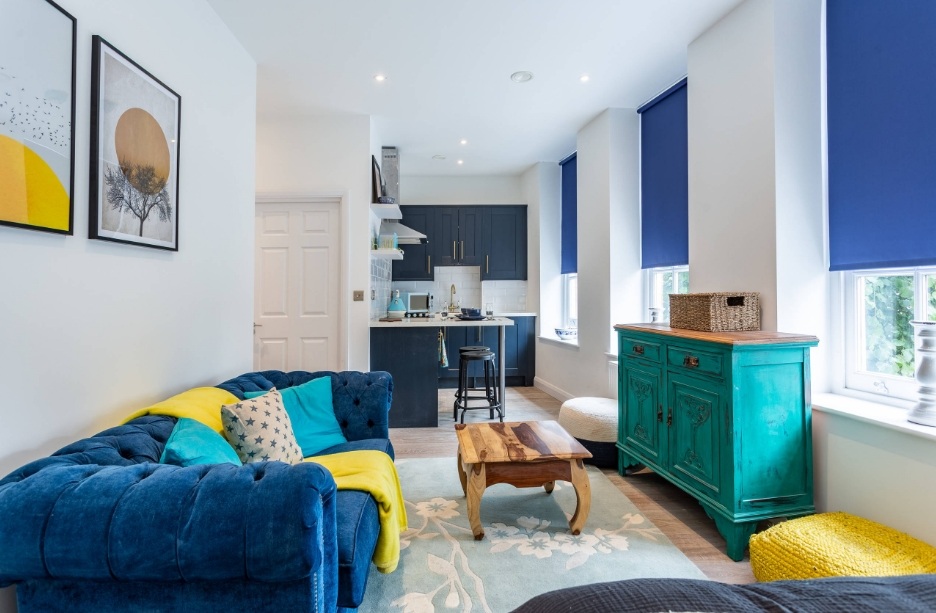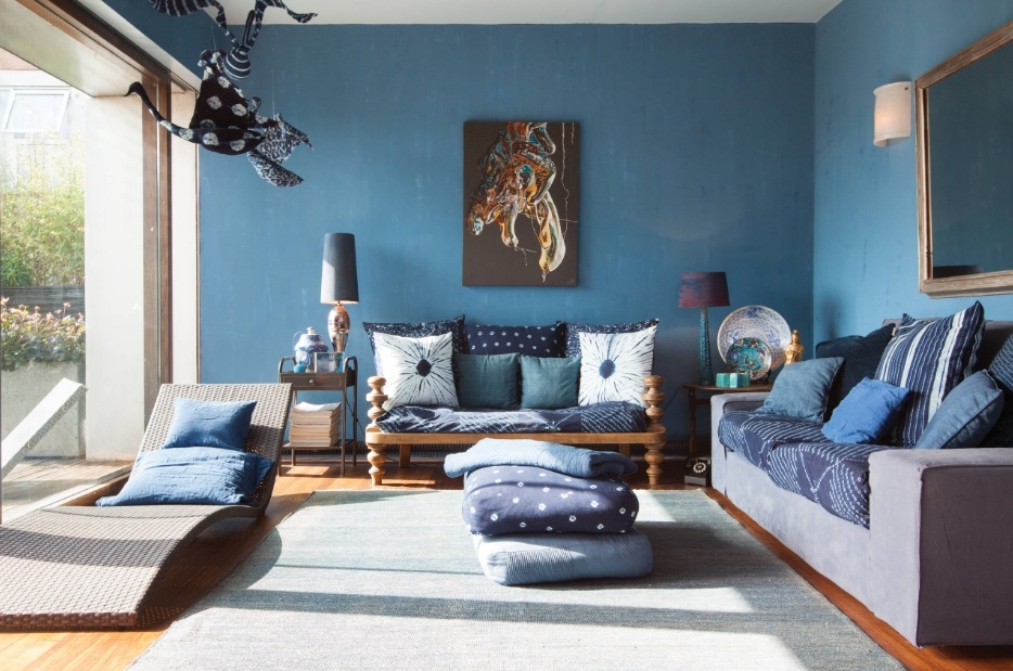 Синий будет смотреться очень легко и гармонично, с его помощью вы сумеете подчеркнуть объем пространства и правильно его зонировать.