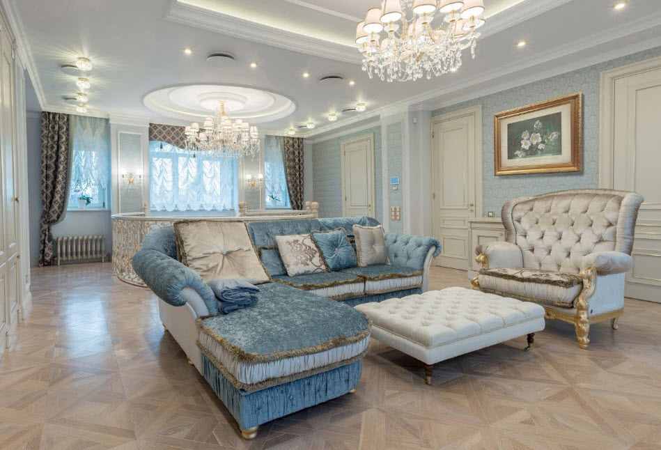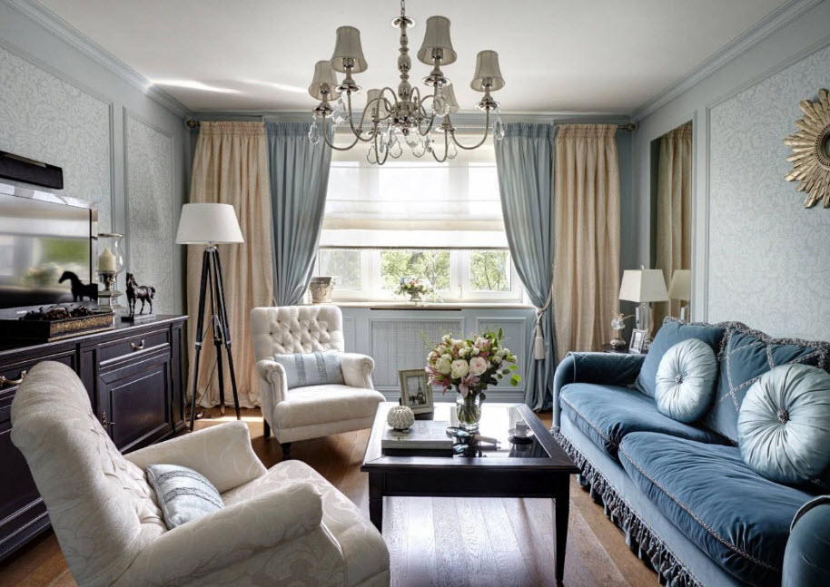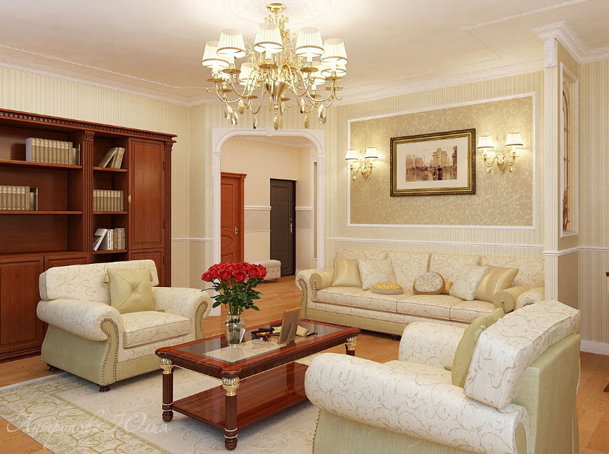 - обязательное наличие мягкого дивана и минимум 2-х кресел,а стиль мебели выбирается под идею интерьера$