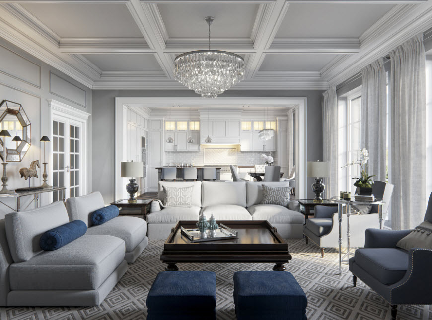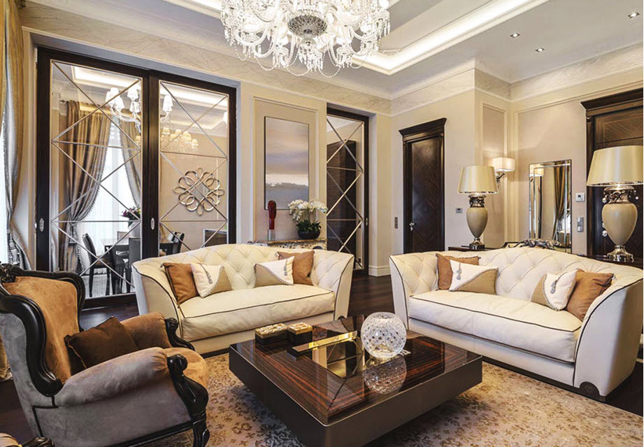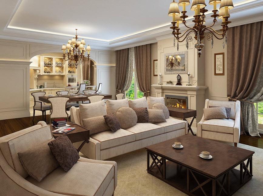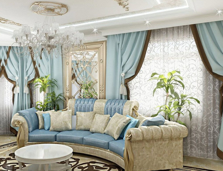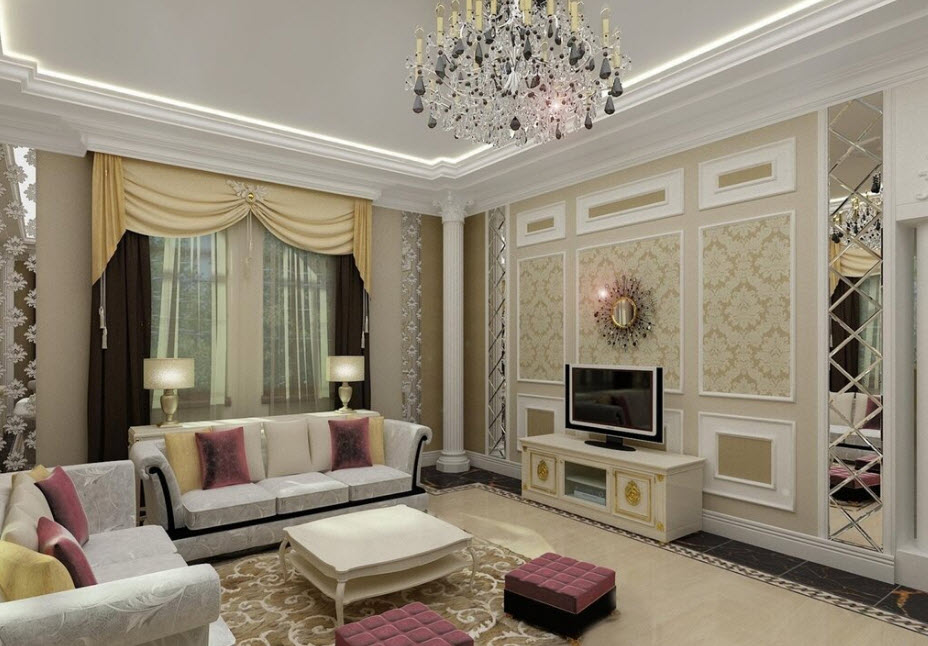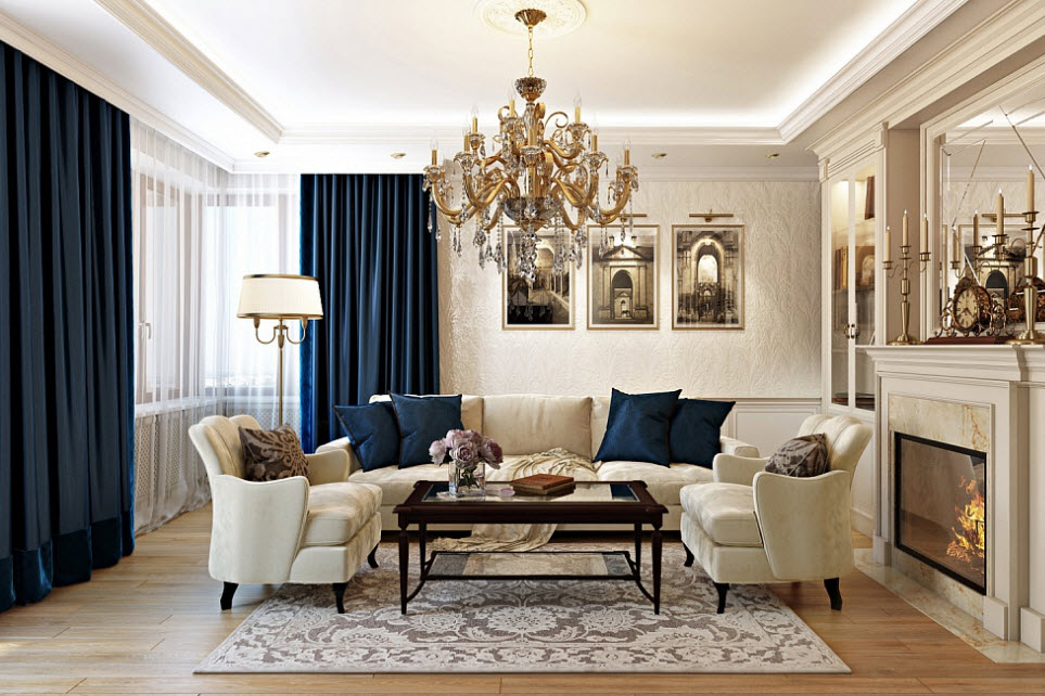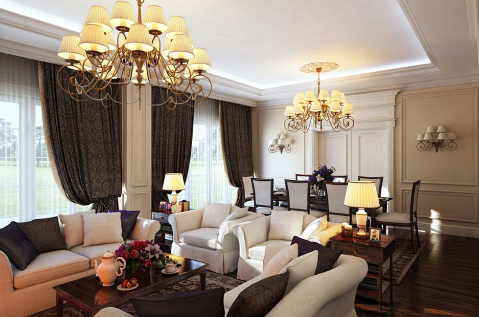Красивый дизайн интерьера гостиной – это не только качественная отделка пола, стен и потолка, но и грамотная меблировка, текстильное наполнение, освещение и декорирование помещения