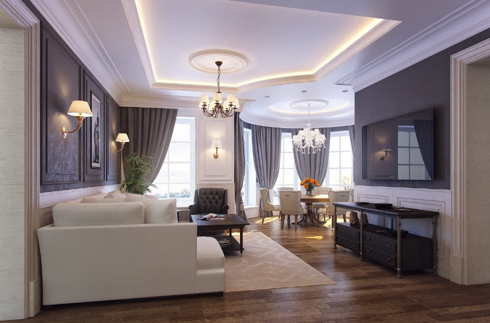 Поэтому дизайнеры рекомендуют придерживаться нескольких правил при оформлении интерьера гостиной: