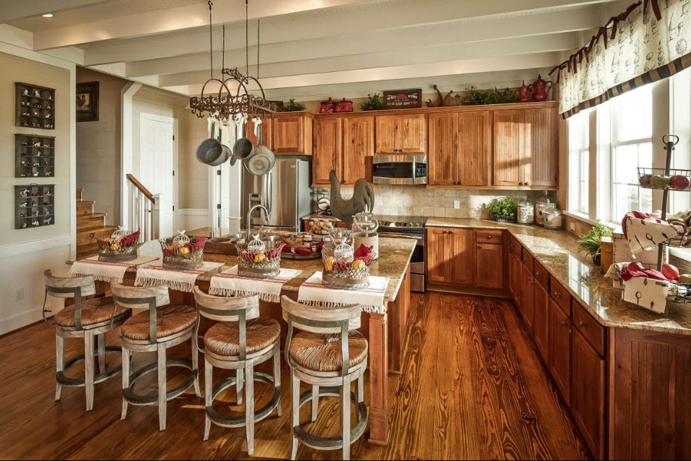 Идеальный вариант дизайна для тех, кому по душе дачная обстановка или деревенский быт. Кухня с интерьером в деревенском стиле создает прекрасную атмосферу, чтобы насладиться домашним теплом, семейными посиделками, частыми застольями и душевной чайной церемонией.