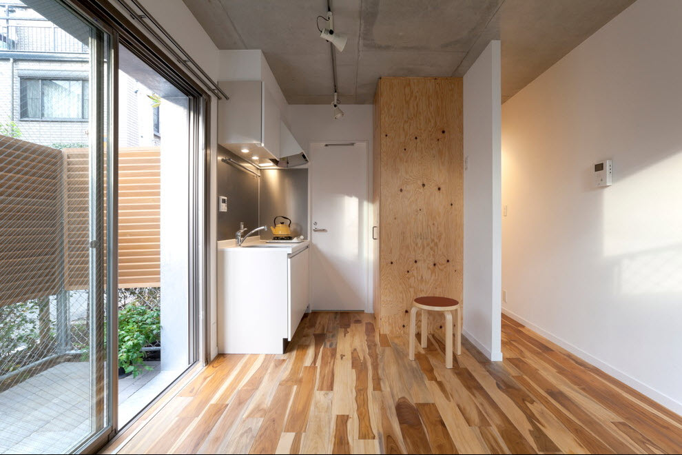 Окна нужно оставлять максимально открытыми. Естественный свет лучше всего подчеркивает ширину пространства, делает его еще свободнее. Искусственное освещение используют для разделения помещения на зоны. Можно разместить: