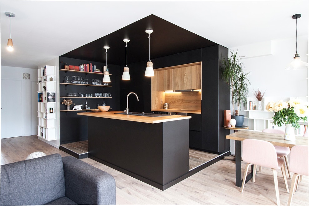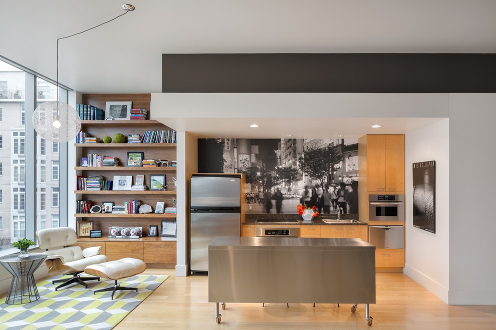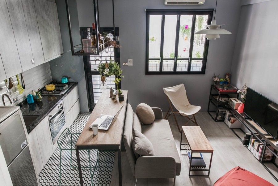 В небольших помещениях избавляются от всего лишнего. Предпочтение отдается функциональной и встроенной мебели. От декора порой отказываются в угоду функциональности.