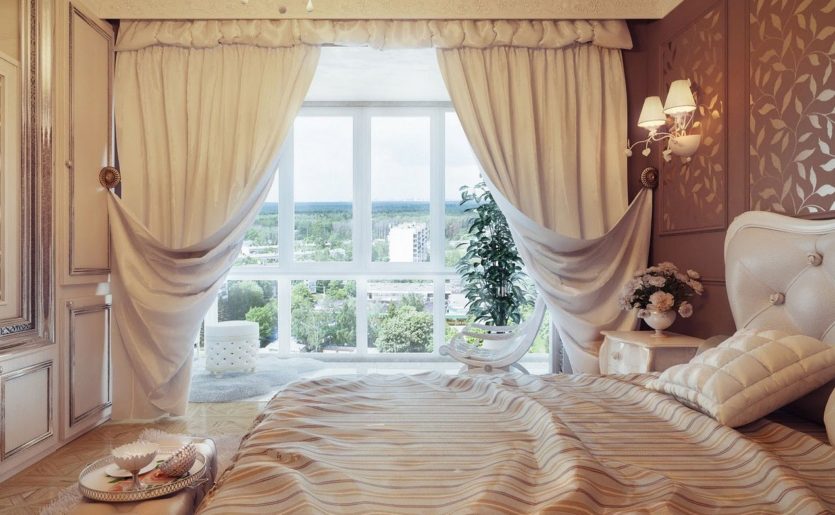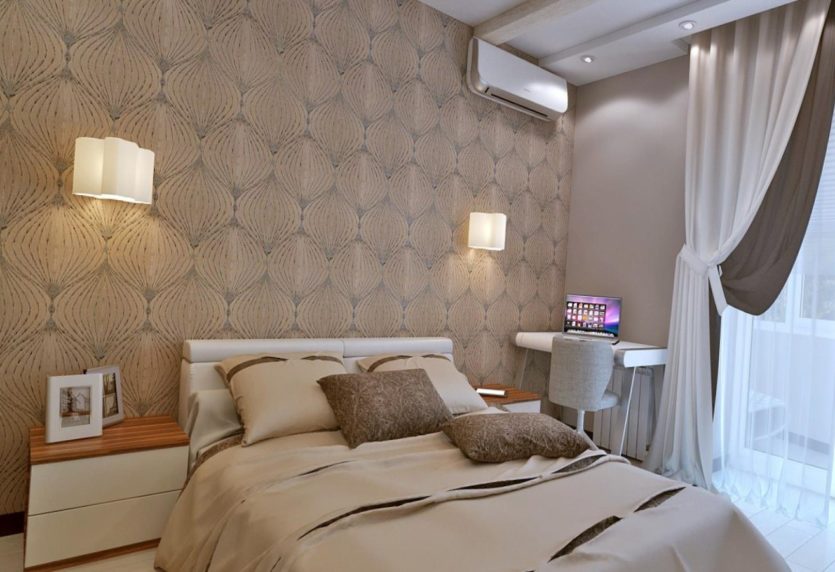 Спальня 15 кв м с балконом позволяет расширить комнату путем объединения пространства.