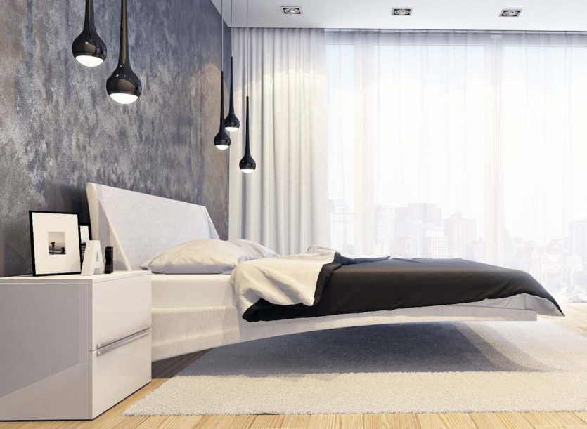 Хай-тек спальная подразумевает, что используются лаконичная мебель. Естественно, в спальной есть кровать, чаще всего двуспальная, вместительный гардероб, светильники. Для комфортного сна выбирается ортопедический матрас.