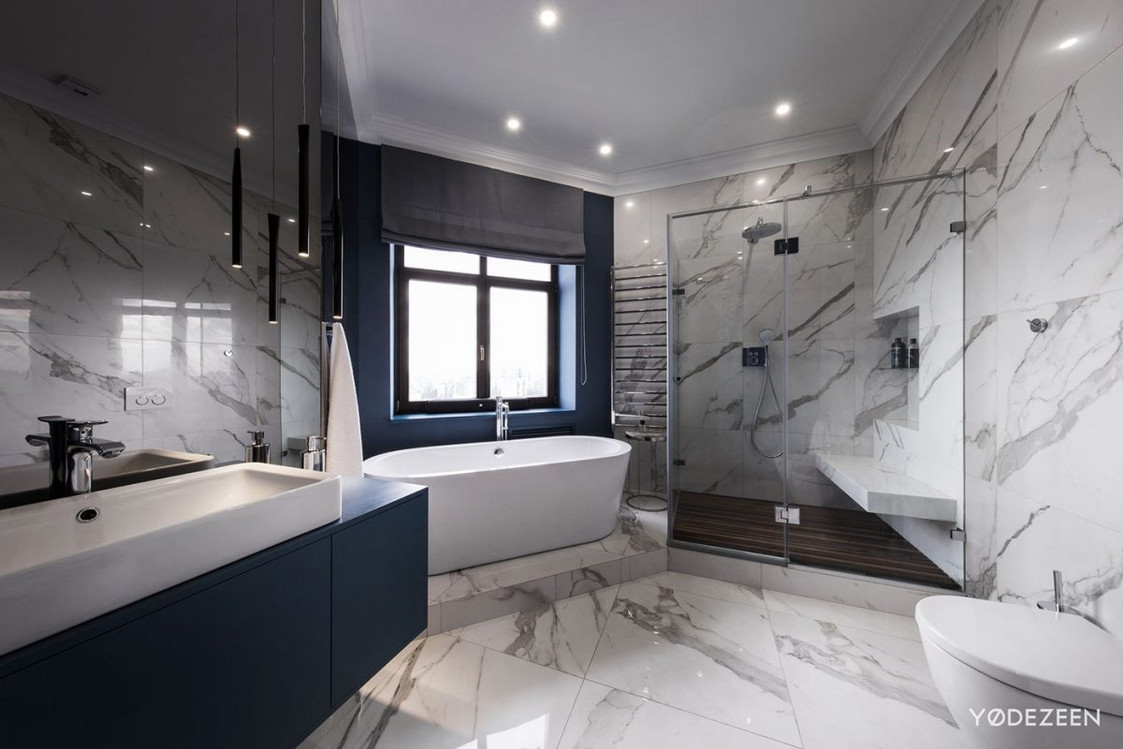 Второе по значимости преимущество — это психологическая составляющая. Человеку свойственно воспринимать просторные помещения как более комфортные и элитные. Да и напрягаться с вопросом о декоре маленькой комнатушки не придётся, так как подобрать стилевое направление для просторного санузла намного легче.
