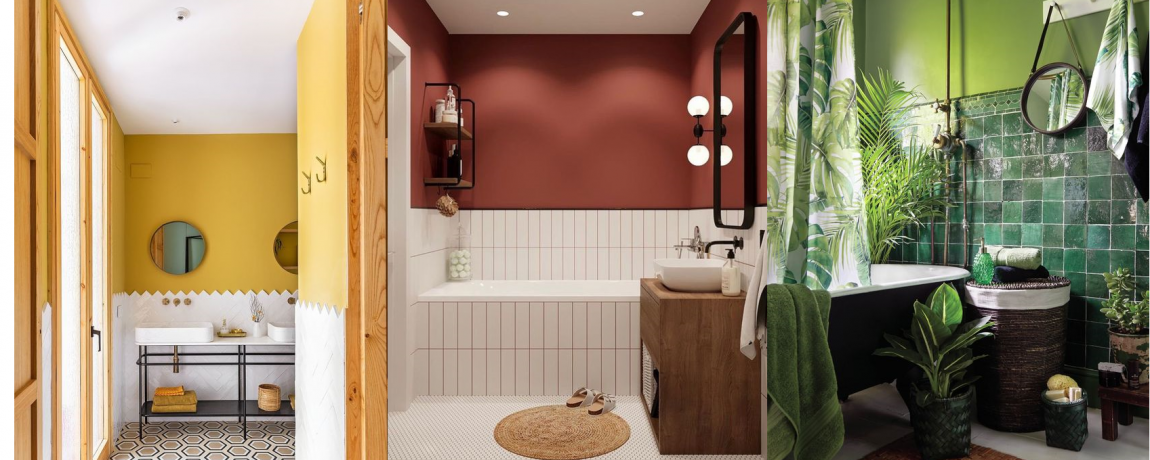 Сочетание кафеля с краской или обоями