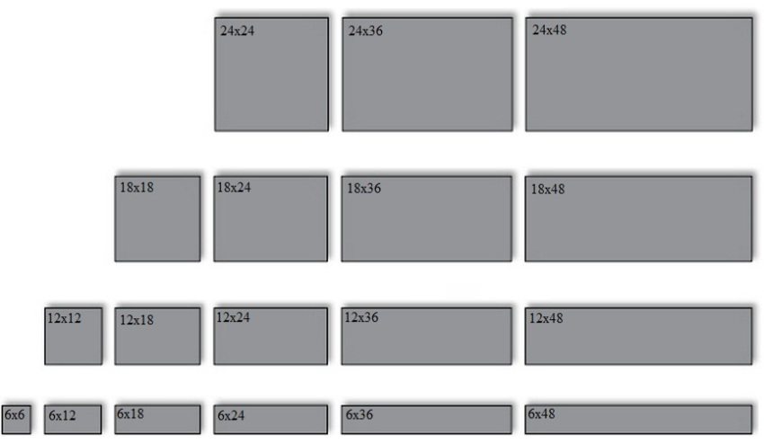- Шахматный. В отличие от предыдущего способа, край сегмента одного ряда располагается по центру сегмента из смежного (смещение элементов следующего ряда на ½). Таким образом, образуется шахматный узор. Обрезки составляют 5–9%.