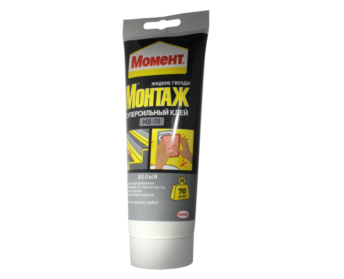 - «Момент» – клей быстро высыхает после нанесения. Для работы нужен специальный пистолет. По ценовой политике клей дороже остальных, его больше расходуется, но для работы самый удобный и оправдывает себя.