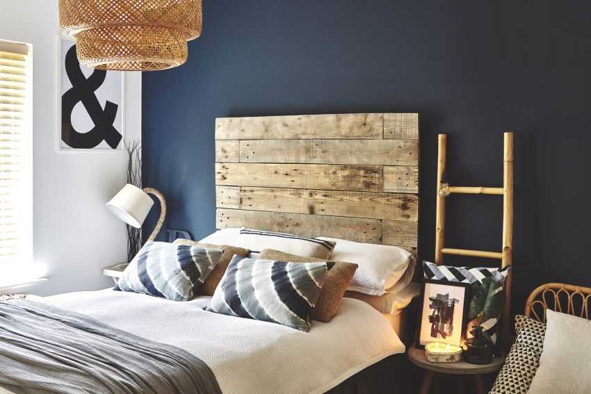 Не имея изголовья, покупатель сам решает, как именно ему оформить зону вместо спинки. Для этого можно использовать самые разнообразные идеи.