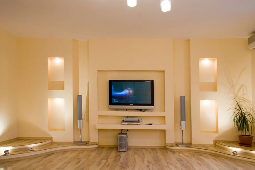 Необходимо обратить свое внимание и на гипсокартонные ниши под телевизор