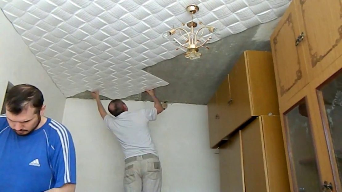 Перед тем, как приклеить потолочную плитку, важно сделать выравнивание потолка. Это требуется для поверхности, имеющей серьезные перепады, ямы, сколы