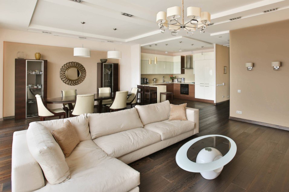 - Все предметы подбираются по габаритам помещения: для маленьких гостиных – компактные, для просторных – крупные.