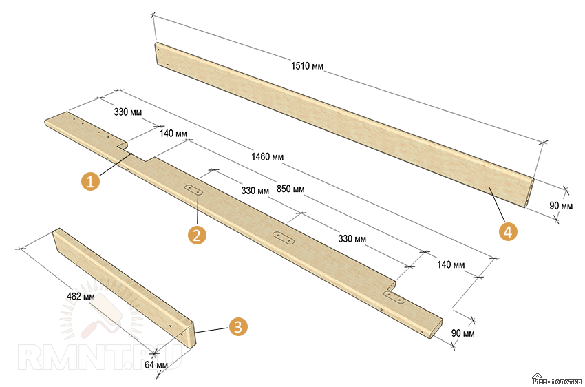 - Ложе (2 штуки) из деревянного массива или ДСП толщиной не менее 18 мм.