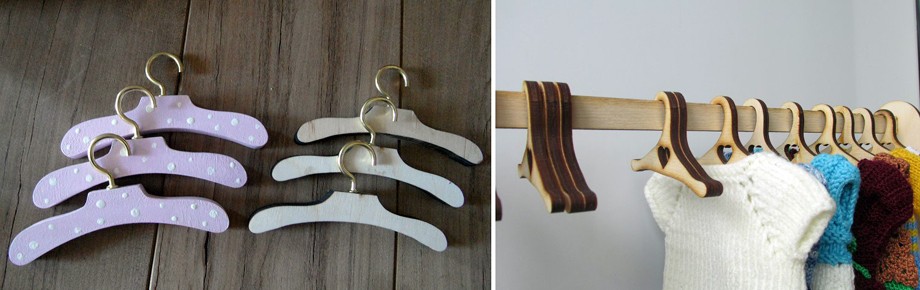 Если вы обладаете навыком работы на фрезерном станке высокой точности, то вешалки можно вырезать из дерева. Но деревянные вешалки нужно хорошо шкурить, чтобы ребенок не загнал себе в палец занозу.
