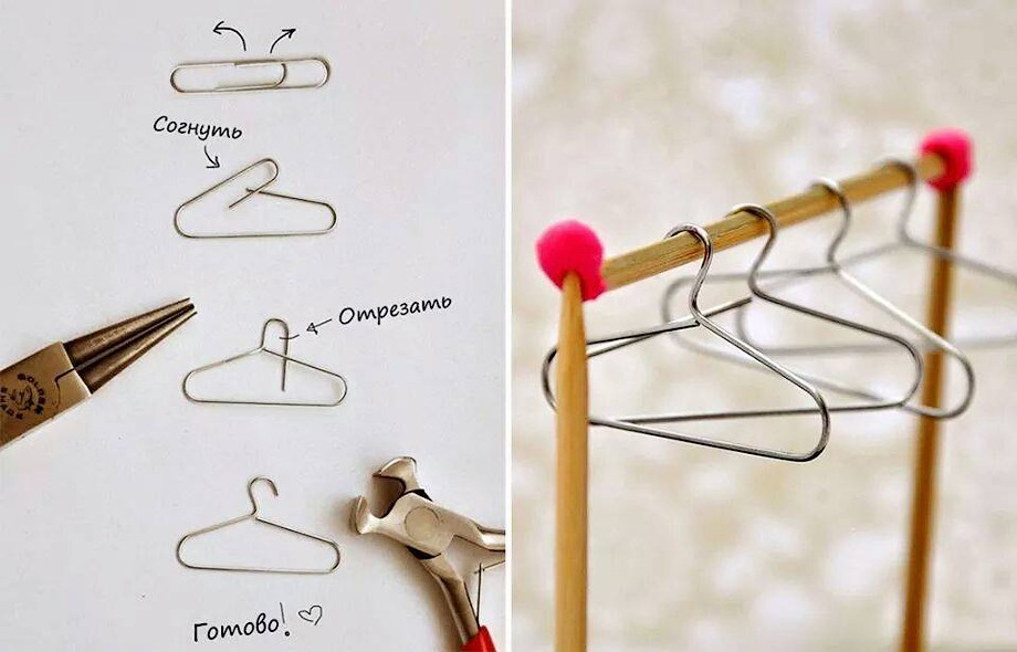 Удобнее и быстрее всего сделать вешалки из плотной толстой проволоки: