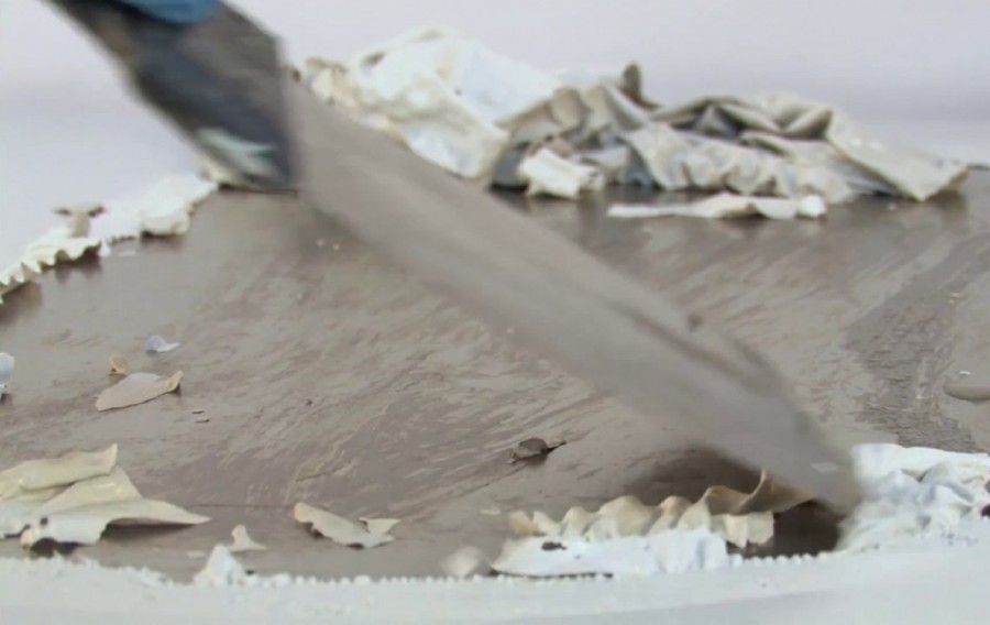 При использовании второго варианта следует обильно смочить любую ветошь или губку в Уайт-спирите и нанести средство на обрабатываемую поверхность. Сверху накрыть ее полиэтиленом и оставить в таком виде на 30-40 мин. По истечении времени соскрести размягченную латексную краску шпателем. При необходимости процедуру повторить несколько раз.