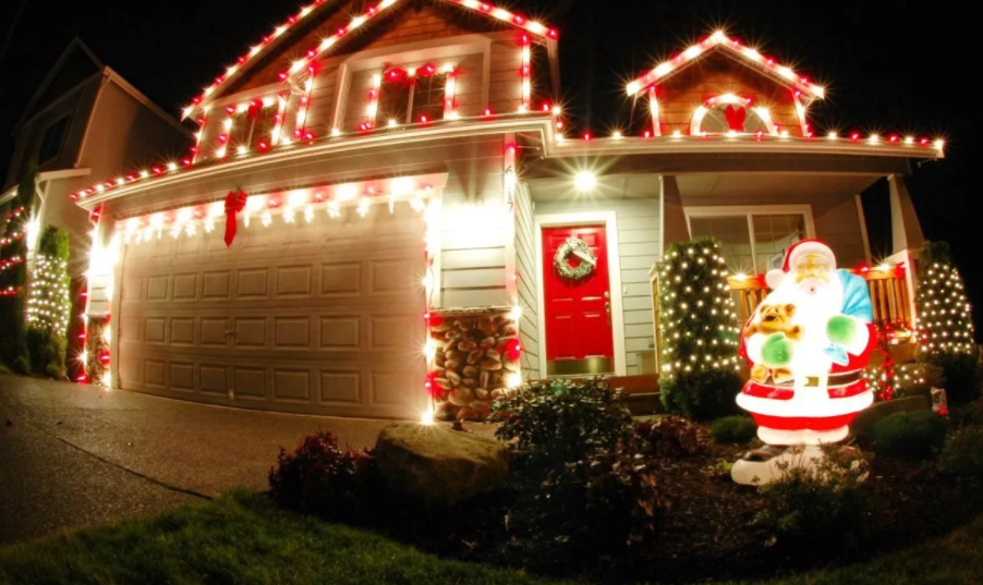 При оформлении двора к Новому году гирляндами нужно учитывать их эксплуатационные свойства.