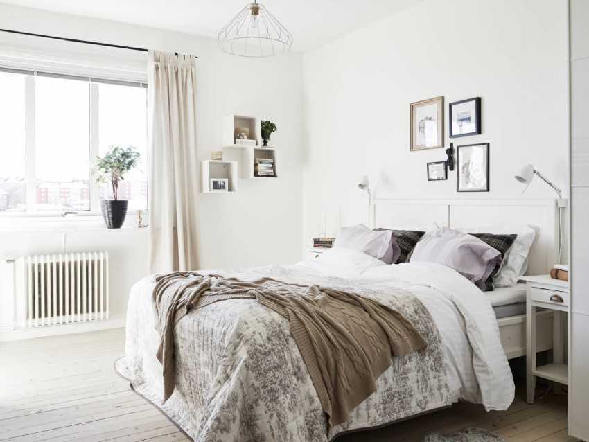 Небольшая модель с зеркалом и удобным креслом, вместо одной из прикроватных тумбочек, позволит сохранить полезную площадь и сделать комнату более функциональной.