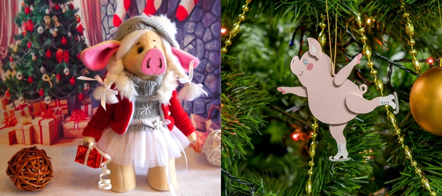 Чтобы встретить Новый Год Свиньи, рекомендуется расставить по квартире красивую посуду из керамики и глины, восковые фигурки и свечи, изделия из дерева. А на самое видное место нужно поставить символическую статуэтку – фигурки Свиньи. Это может быть изготовленная и разрисованная своими руками поделка, копилка или игрушка.