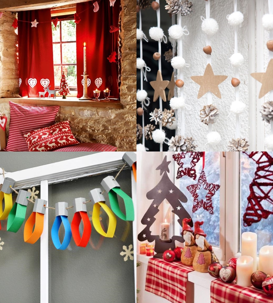 Когда уже стиль оформления комнаты определен, самое время приступать к созданию декора своими руками. Рекомендуем начинать с определенной зоны, постепенно украшая все помещения. Вначале предлагаем оформить окна. Для этого можно использовать бумажные гирлянды или оригинальные подвески со светящимися лампочками.