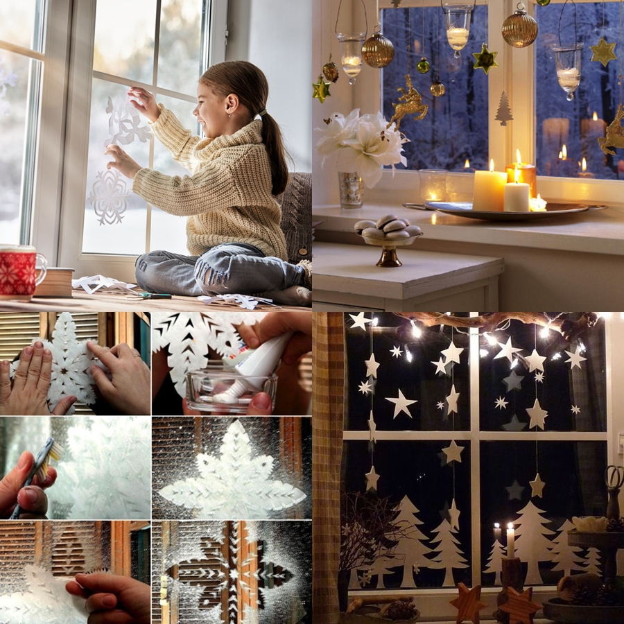 Совсем недавно новогодние окна украшали снежинками, вырезанными из белой бумаги или салфеток. Сегодня варианты декорации окна более многочисленны. В магазинах продают уже готовые наборы для украшения окон, можно распечатать новогоднюю красивую картинку и сделать наклейки своими руками.