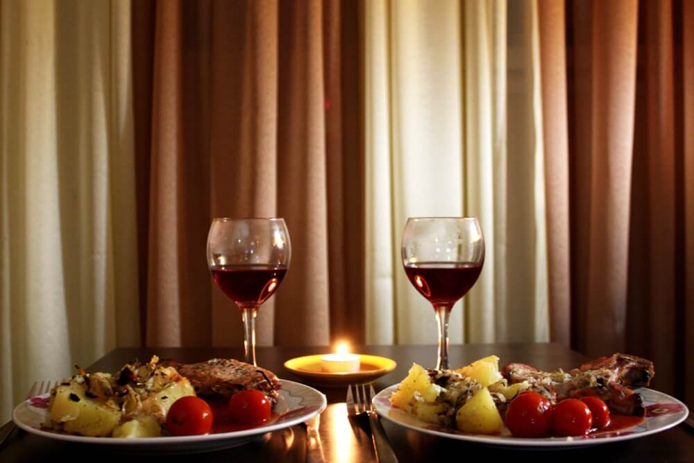 Самый очевидный вариант вечера для двоих – романтический ужин. Чтобы время, проведенное вместе, запомнилось надолго, организуйте его по-особенному – творческая фантазия и нотка креатива будут весьма кстати. Приглушенный свет, приятная душевная музыка, красивая сервировка стола, безусловно, создадут соответствующую атмосферу. Но кроме этого, постарайтесь удивить свою половинку: подготовьте оригинальный символический подарок (возможно, сделанный своими руками), который потом каждый раз будет напоминать о ваших лучших моментах, а если вы обладаете кулинарными талантами, приготовьте что-нибудь особенное, продумайте необычную подачу блюд. Но если высокая кухня не ваш конек, не беда, ведь еду всегда можно заказать в ресторане.