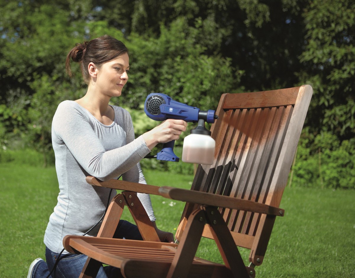 · помогает такой краскопульт при мебельных работах, с его помощью удобно проводить пропитку лаками, морилками;