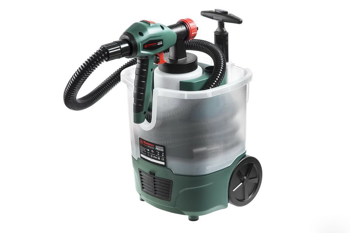 - Хаммер ПРЗ650 переносный тип станции с воздушным распределением краски, может двигаться на колесах, есть выдвижная рукоятка;