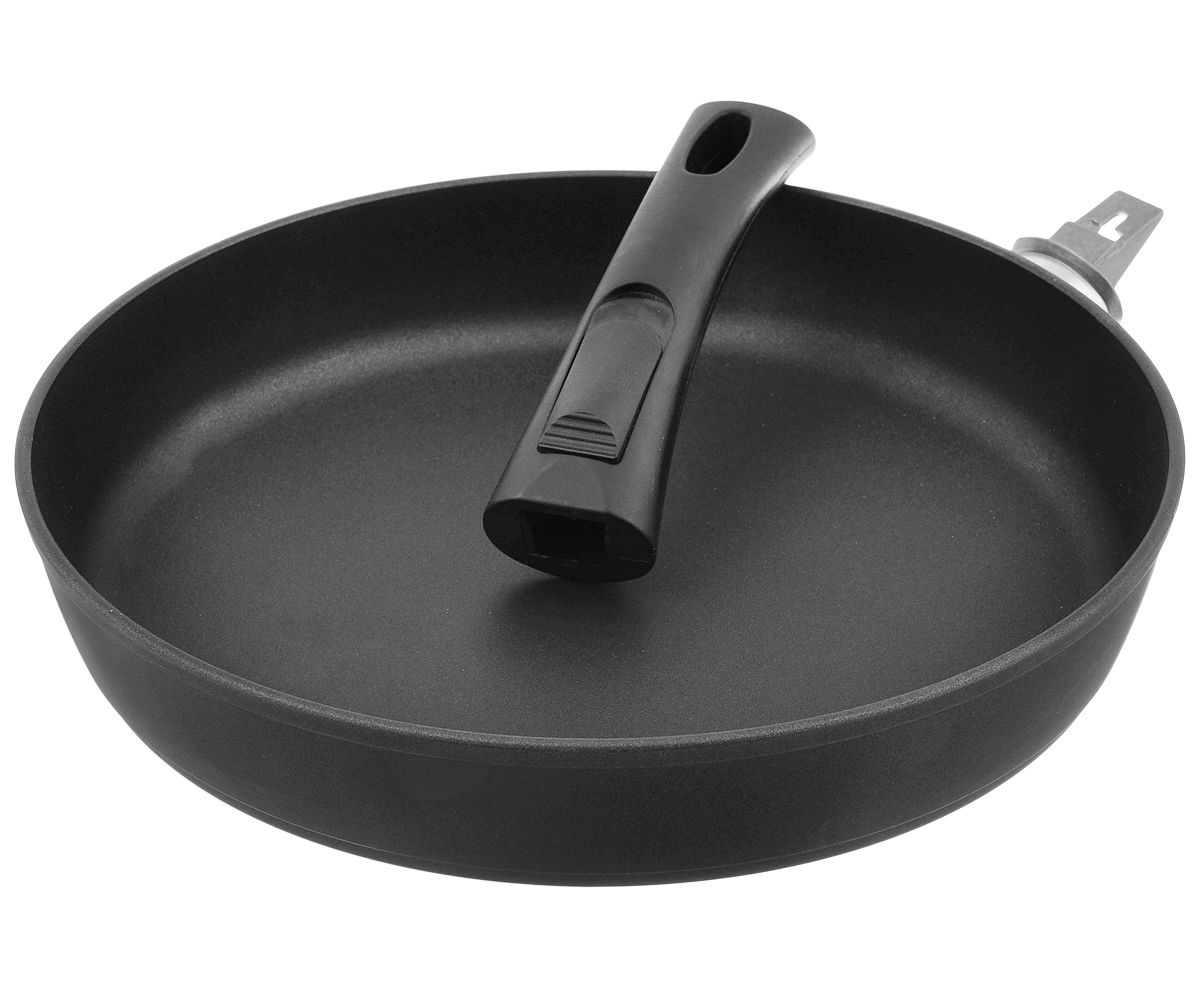 Продукция немецкого производства обладает высоким качеством. Толщина дна сковородки с покрытием составляет 10 мм, а диаметр равняется 28 см. Стоимость модели достаточно высока, но за эти деньги вы получаете надежный и качественный товар.