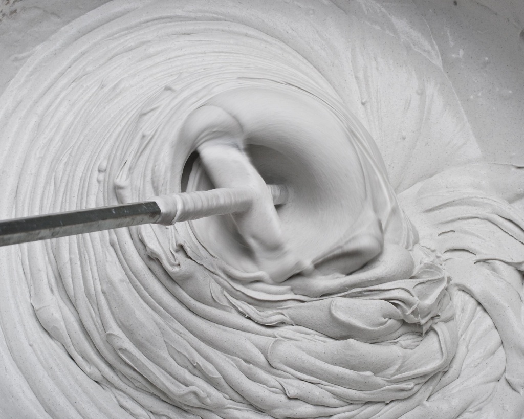 Перед нанесением требуется приготовить шпаклевку к работе. Сухие смеси замешиваются при помощи миксера в емкости в соответствии с инструкцией по применению. При покупке готового состава данная стадия исключается из технологического процесса.