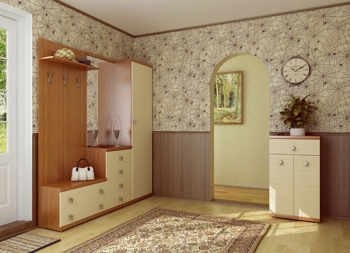 - Функциональные задачи. В коридоре практически всегда есть шкафчики для одежды и обуви. Их наличие отражается на технических особенностях полотна, будут ли это моющие, жидкие или какие-либо др.