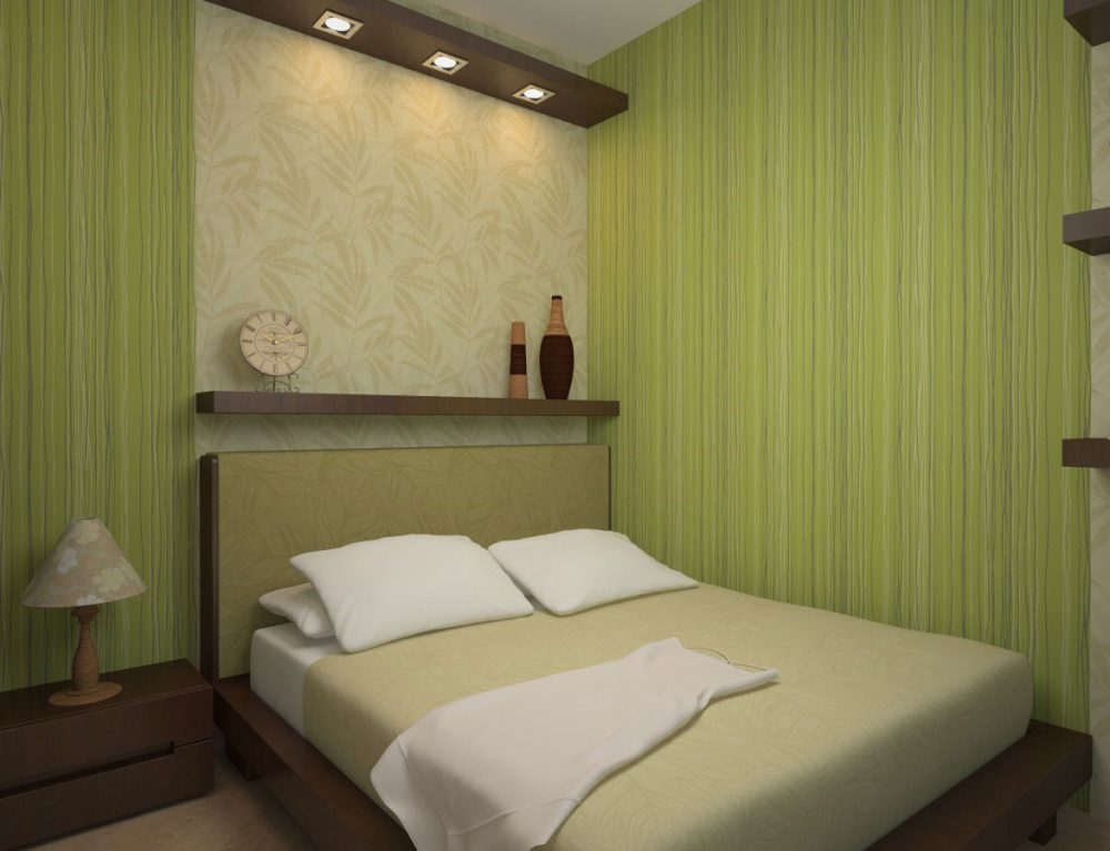 Если обои выбираются для маленькой по площади спальни, то не стоит приобретать темные обои, причем неважно, какой оттенок они будут иметь. Темные стены сделают комнату визуально еще меньше и как бы лишат ее воздушного пространства