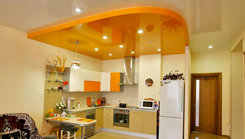 Натяжной потолок для маленькой кухни