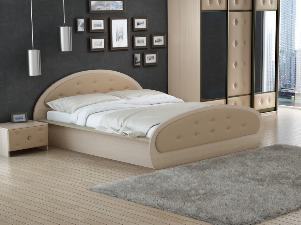 Некоторые модели имеют изогнутое изголовье, которое можно рассматривать в качестве отдельной детали интерьера, отделяющего спальное место от окна или стены. Подобные спинки могут быть намного шире самого ложа, не только отделяя его, но и захватывая прикроватные тумбы. Такой дизайнерский ход объединяет все элементы спального места в единый ансамбль.