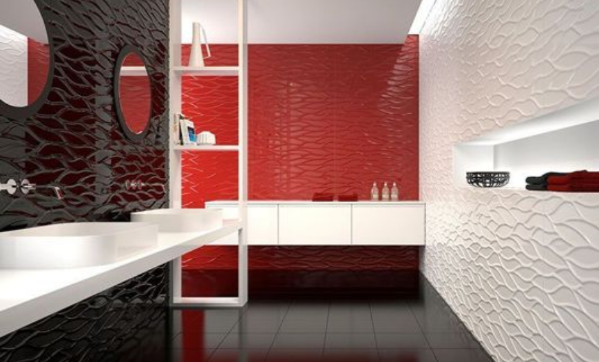 По типу лицевой поверхности в маленьких комнатках выбор делается в пользу гладких, блестящих плиток. Глянец на поверхности позволяет визуально увеличить пространство. В этом направлении особо выделяются ультрасовременные модели с 3D-эффектом, который создает максимальный эффект расширения. Применение рельефной плитки допускается при наличии на ней качественной эмали и только на небольших участках стены. Покрытие всей стены рельефным кафелем вызовет обратную реакцию.