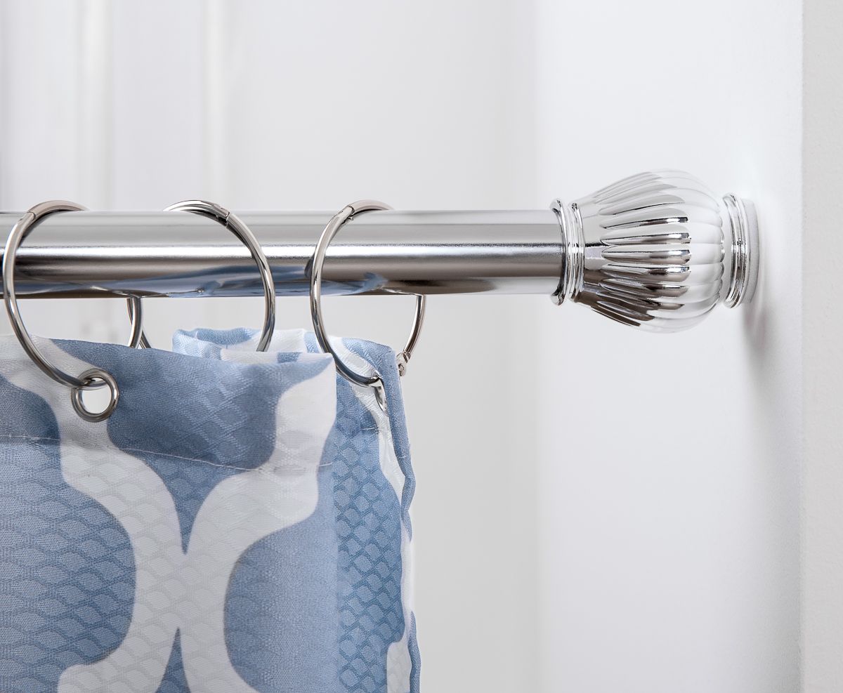 Телескопическая конструкция станет идеальным решением для стандартной и не очень большой ванной комнаты. Она выдержит легкие занавески, порадует привлекательностью и простотой ухода. При желании систему можно будет легко демонтировать, следов на стенах после этого не останется.