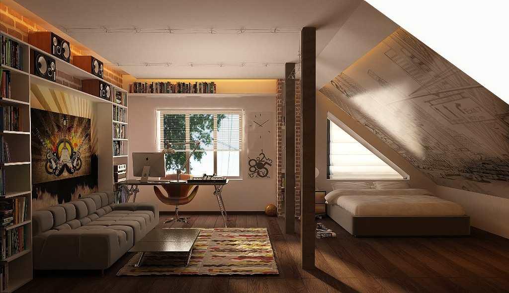 Если в вашей комнате мебели немного, и вы не желаете терять ощущения свободного пространства, тогда выбирайте обои в спокойных тонах. Или оклейте одну из стен фото обоями, отобразив на ней пейзаж с приятной подсветкой в темное время суток.