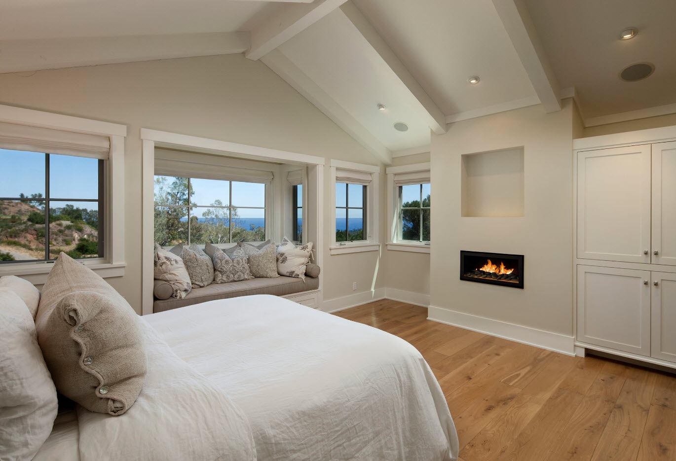 Мягкие ткани и материалы сделают вашу спальню уютной и теплой, поэтому стоит позаботиться об аксессуарах. Правильный цвет, текстура постельных принадлежностей, подушек, покрывала, шторы или жалюзи — это не только украшения, но предметы, которые влияют на настроение. Приятное прикосновение в спальне 17 кв. м обеспечат овечьи шкуры на полу или мягкие и пушистые мохнатые ковры. В такой спальне можно даже установить фальш-камин, придавая интерьеру романтику. Большое зеркало в нужном месте несет не только декоративную функцию, но и визуально увеличивает комнату.