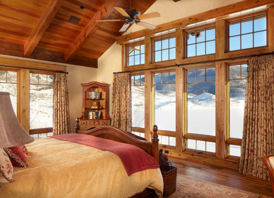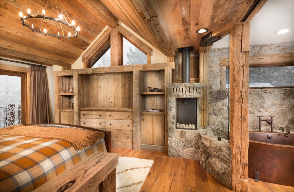 Подобное оформление хорошо будет сочетаться с камином и домашней библиотекой.