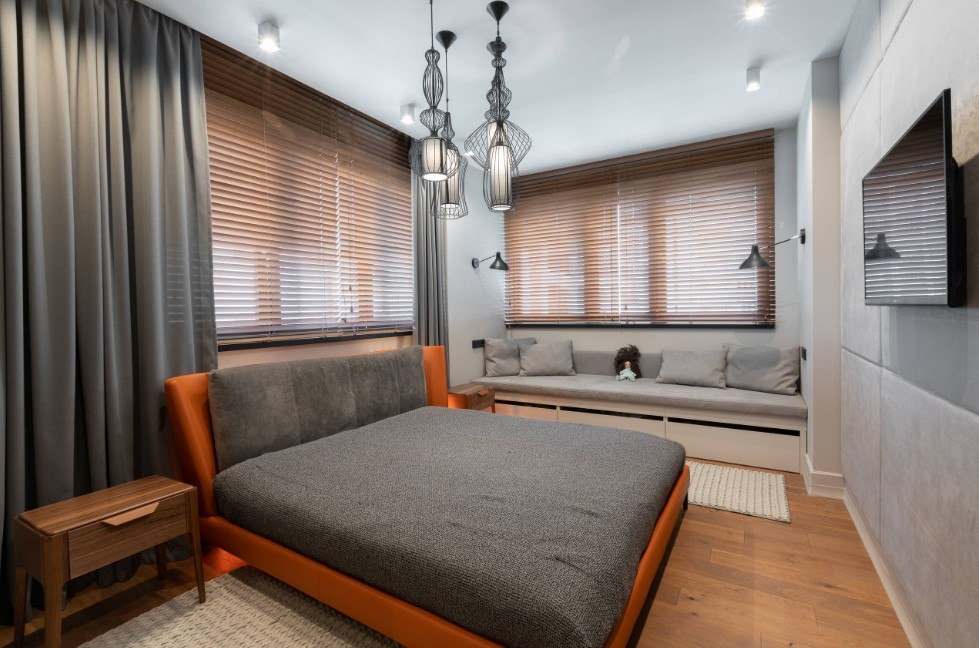 Серо-коричневая спальня