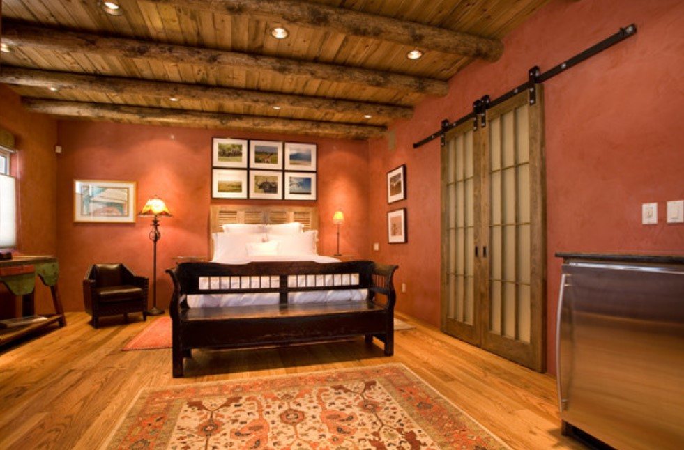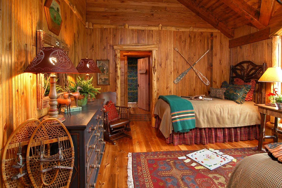 Стены оштукатуриваются, красятся. В качестве напольного покрытия – доски из натуральной древесины светлых тонов. Приветствуются самодельные деревянные шкатулки, медные подсвечники, резные фигурки из кости или дерева.