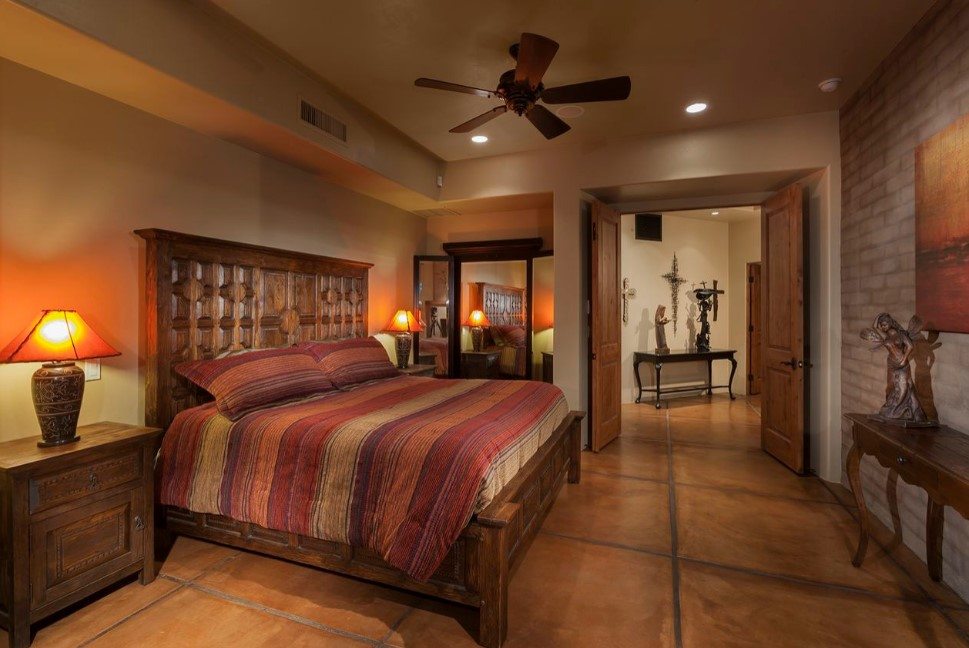 Персиковый хорошо вписывается в этнические стили: мексиканский, марокканский. Дизайн в мексиканском духе, допускает сочетание с любыми яркими красками. Кому-то это контрастное разноцветье покажется излишним, найдутся люди, которым буйство красок нравится.