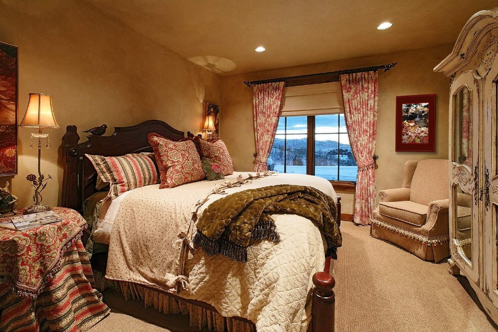 В качестве таких элементов могут использоваться подушки в наволочках с кружевами, презентабельные покрывала, раритетные предметы: к примеру, большой старинный комод или объемное зеркало, обрамленное в раму.