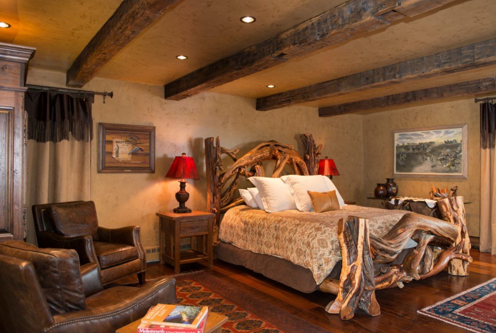 Цвет мебели подбирается контрастным по отношению к стенам — если стены темные, меблировка светлая и наоборот. Кованые, резные детали хорошо смотрятся во всех традиционных стилях спального дизайна, хромированные, покрытые толстыми слоями краски, стеклянные подойдут практически к любому из современных интерьеров.