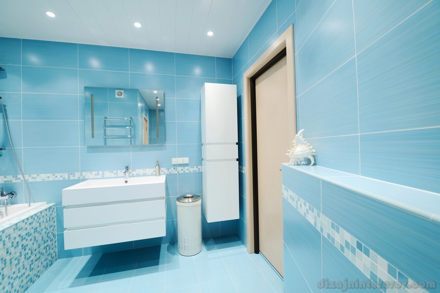 Если в интерьере ванной заметны необычные решения дизайнера, тогда это больше, чем просто комната для водных процедур. Известный приём — на нейтральном фоне использовать локальный яркий ультрамарин или васильковый. Они очень хороши в роли акцента.