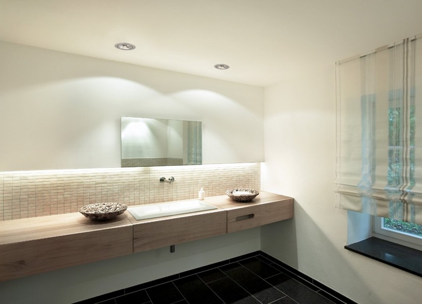 Интересно будет смотреться подсветка сантехнических приборов и мебели. Поэтому, если вы ищите какой-либо оригинальный приём для своей ванной, то можете смело использовать вышеописанную задумку.